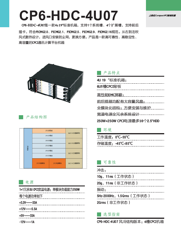 CP6-HDC-4U07是一款4u 19"标准机箱,支持1个系统槽、4个扩展槽,支持前后插卡,符合PICMG2.0、PICMG2.1、